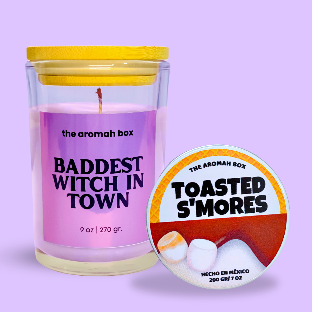 ¡Celebra Halloween con nuestro exclusivo Kit de 2 Velas Aromáticas de Edición Limitada: Witching Hour! Este encantador set incluye: